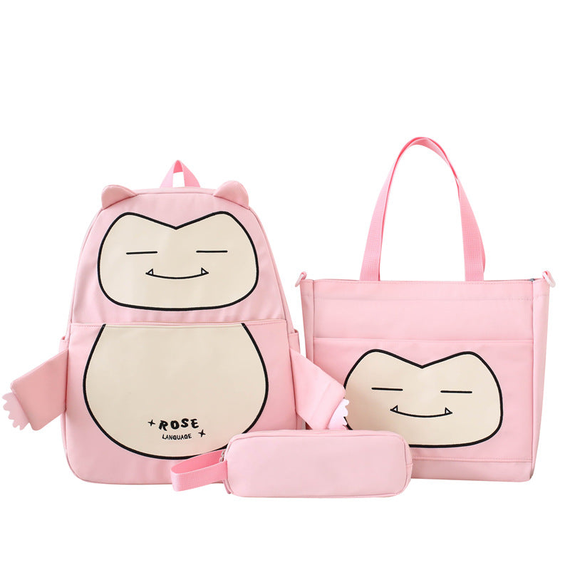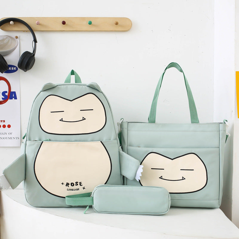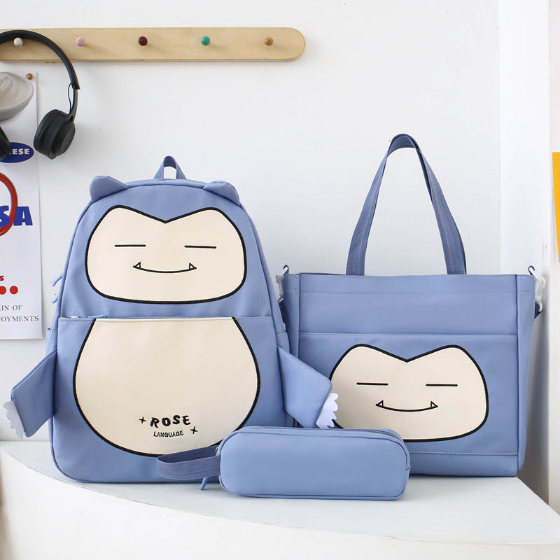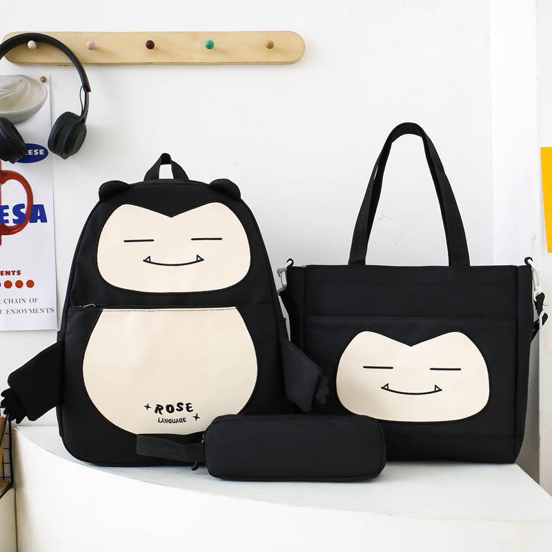 Ensemble 3-en-1 Inspiré de Snorlax – Sac à Dos, Tote & Trousse